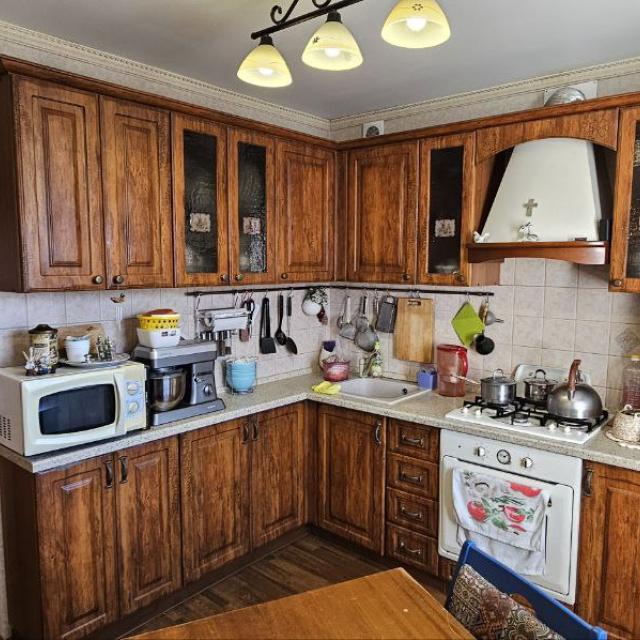 Продается большая, просторная 3-х квартира, расположенная на две стороны, светлая, теплая, с хорошим ремонтом, на площадке всего 2 квартиры находится, соседи хорошие. В квартире установлены - стеклопакеты, хорошие межкомнатные двери, радиаторы, натяжной потолок, одинаковый линолеум по всем комнатам, коридоре и кухне, санузел совмещенный в кафеле.