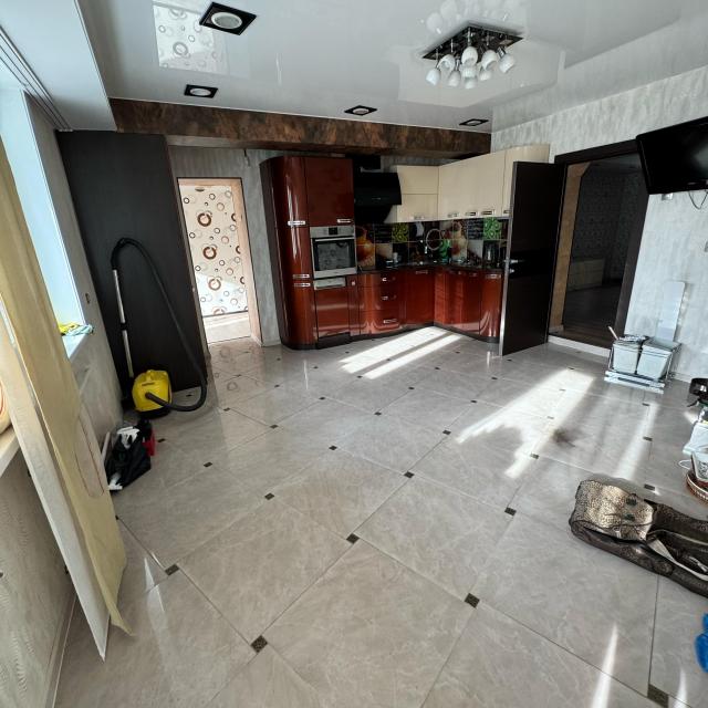 Продается большая, просторная 5-ая квартира улучшенной планировки, на комфортном 4-ом этаже, с двумя утепленными балконами, двумя санузлами, все комнаты выходят во двор, а кухня/зал на микрорайон Кирова. В квартире сделан качественный/хороший ремонт: полы ламинат/керамагранит, установлены везде стеклопакеты, одинаковые межкомнатные двери с магнитными замками; натяжные глянцевые потолки с точечными эксклюзивными светильниками под заказ, корейские дорогие обои; ванна/туалет кафель, теплый пол, счетчики ХГВ; новая сантехника, электропроводка, во все комнаты заведен телевизионный кабель; остаются во всех комнатах встроенные шкафы, в коридоре прихожая, на кухне встроенная кухня с техникой - плита BOSCH, духовой шкаф, посудомоечная машина.