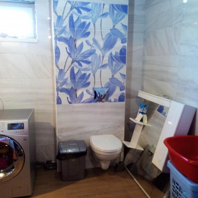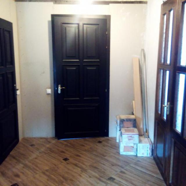 Дом в хорошем состоянии без внешней отделки, внутренняя отделка частично сделана. В доме установлены везде стеклопакеты; на полу керамагранит-кухня, коридор, комнаты - дерево, установлены м.двери, радиаторы, два санузла, один полностью в кафеле, второй только туалет+раковина установлены, есть подвал, бойлерная.