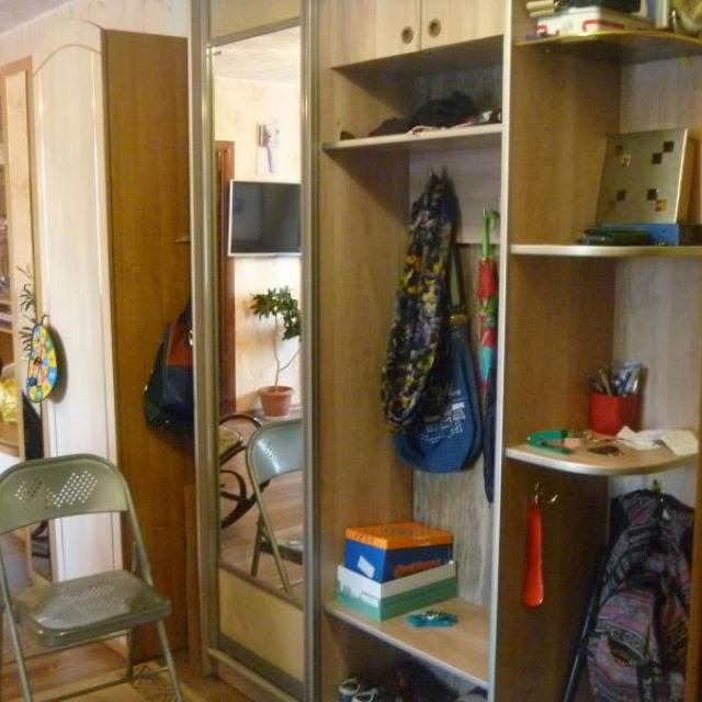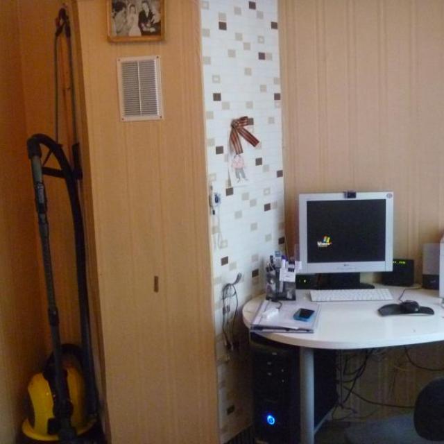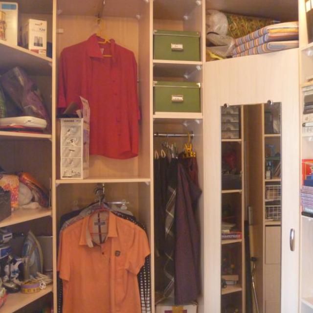 В гардеробной/кабинете стационарно смонтированы книжные полки, а так же полки, шкафы, шефлоты для вещей. Подключен комп с интернетом от ДОМ.РУ на 100 Мбт+КТВ. Имеется откидной столик для мастерства.