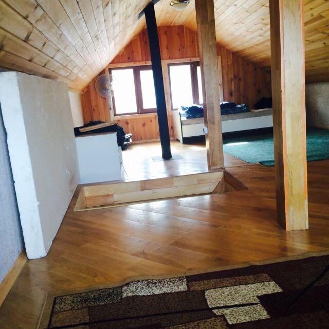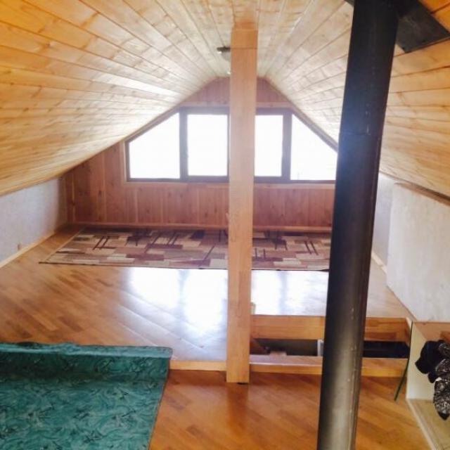 - Краткое описание дома: Дом из кругляка, мягкая кровля, 2 этажа, зимнее проживание. Предусмотрен туалет и душевая кабина в доме, баня встроена в дом. Есть туалет на улице. Полы теплые на 1 этаже, электрокамин, печь, 380 ВТ, стеклопакеты. Вода не подведена.