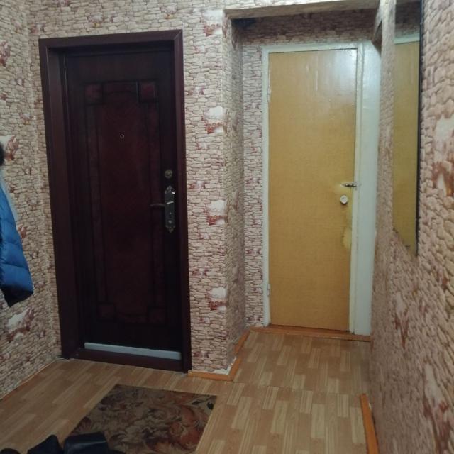 Продается квартира в обычном, жилом состоянии, кухня с комнатой совмещены (установлены стеклопакеты, на полу частично линолеум, санузел в кафеле, евро дверь)