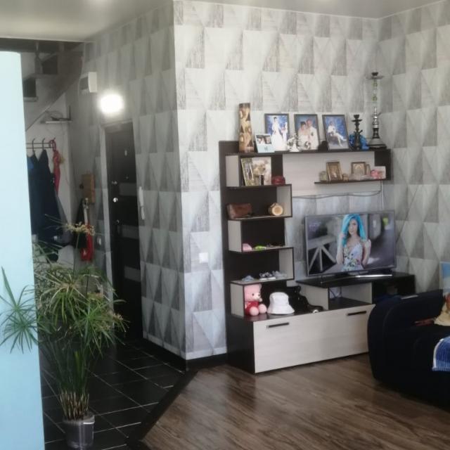 Двухуровневая квартира. 1 эт - студия 39,8м2, санузел. Мансарда - 40м2 - комната, санузел. Мансарда отапливается, окна нет. Сформирована застройщиком. Санузел кафель, счетчики, новая сантехника. Остается кухонный гарнитур, встроенный шкаф в санузле, двуспальная кровать.
