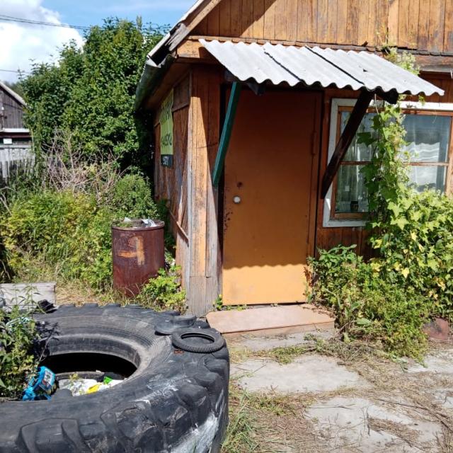 Дом засыпной на небольшом фундаменте, одна комната и веранда, есть еще кладовка у дома. Участок огорожен, есть гараж, теплица