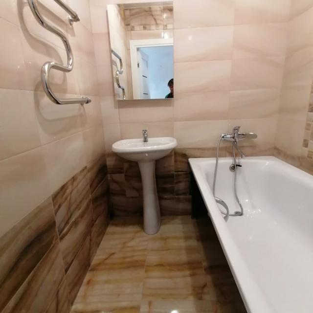 Квартира в новом доме, основной ремонт сделан, осталось наклеить обои на свой вкус. По всей квартире на полу плитка. Установлены хорошие двери. Санузел и фартук на кухне облицованы плиткой. Установлена сантехника.