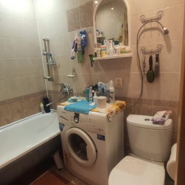 Квартира в хорошем состоянии (установлены стеклопакеты, на полу линолеум, меж.двери, радиаторы, евро дверь, санузел в кафеле), дом расположен в шаговой доступности от дет.сада, школы, остановок общ.транспорта, магазинов.